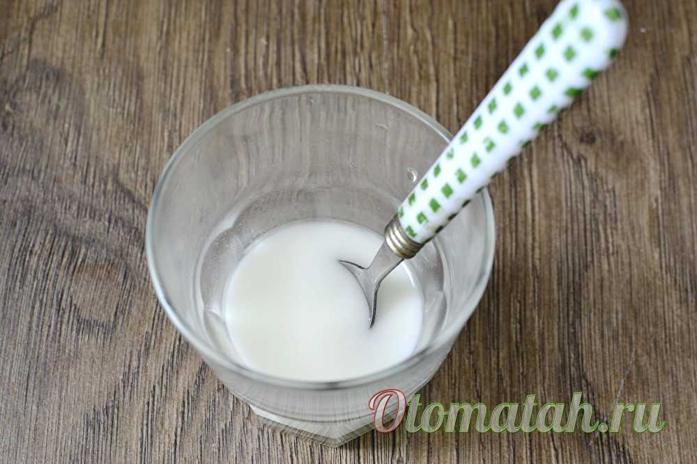 - разводим в теплой воде крахмал;