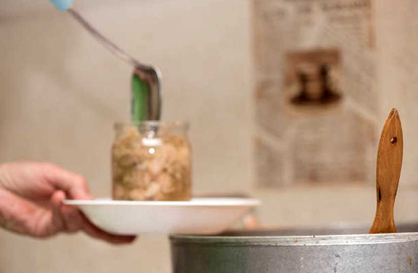 Еще один народный способ проверки качества – потрясти банку. Если внутри булькает бульон – это хороший знак. Значит, в банке не спрессованная желейная масса, а кусочки мяса в бульоне.