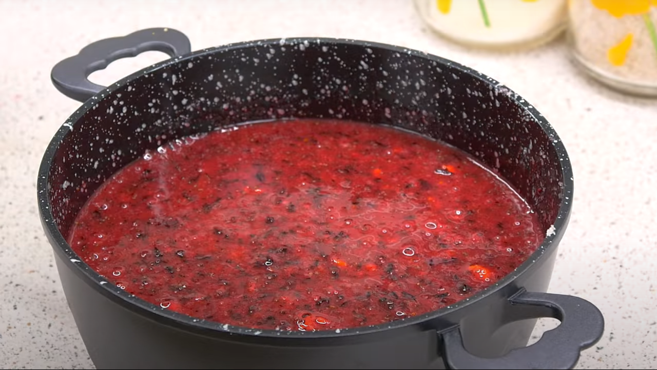 Постоянно помешиваем, чтобы ягоды не пригорели. Смородина должна повариться 5–7 минут.