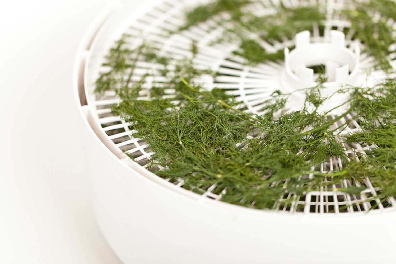 Проще всего заготавливать укроп на зиму владельцам электросушилок, так как это устройство значительно облегчает процесс сушения. Чтобы подготовить траву, достаточно разложить ее на поддоны сушилки и выбрать соответствующий режим с температурой не больше 35–40 градусов. Через полчаса все листочки будут хорошо подсушены.