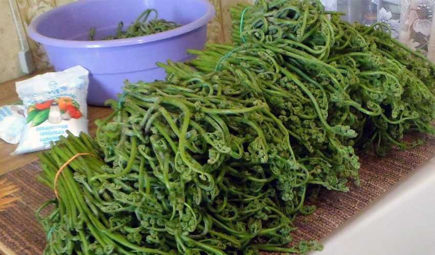 Свежесобранным употребление папоротника в пищу невозможно из – за повышенной токсичности и горечи молодых листочков. Их предварительно обязательно отваривают с добавлением соли не менее 10 минут. После этого отвар сливают (пищевой ценности он не имеет и содержит вредные вещества).
