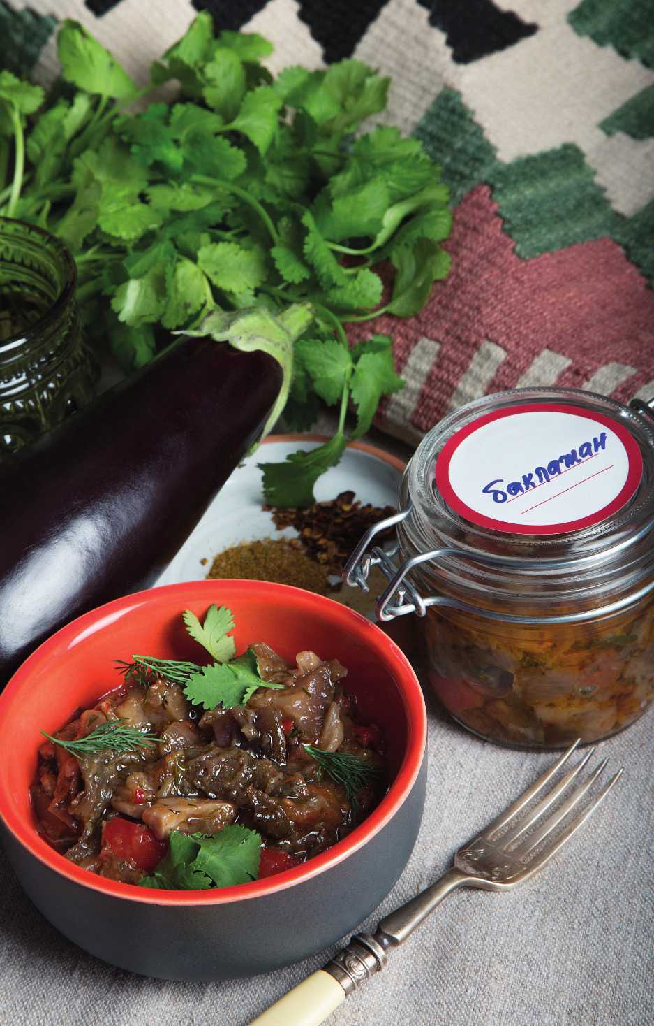 До сих пор не встречала тех, кто не влюблен в это блюдо с первой ложки. Отличный гарнир к мясу-гриль и птице. Прекрасный постный спред: ломтик бородинского или ржаного хлеба и ложка закуски. Радость для вегетарианцев! Выбирайте молодые баклажаны маленького размера: у них нежная шкурка и мягкие семена. Подавая овощную закуску на стол от души посыпьте ее мелко порубленной зеленью с собственной грядки: петрушка, кинза, сельдерей, зеленый базилик.