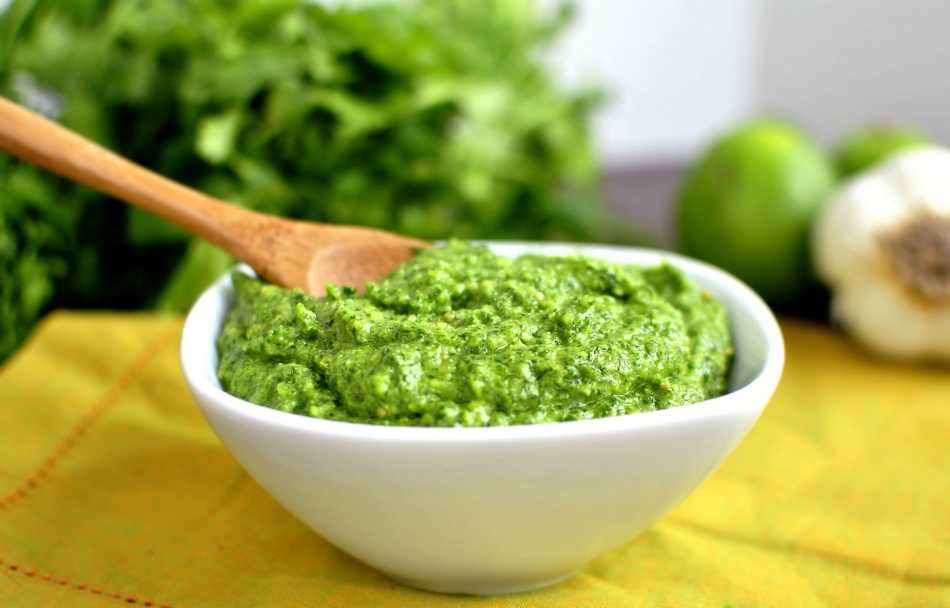 Рецепт приготовления позволит получить пастообразный соус из петрушки. Готовое блюдо можно использовать для бутербродов, подавать к рыбе и мясу. Добавление сладкого и жгучего перцев прибавит витаминов в составе аджики.