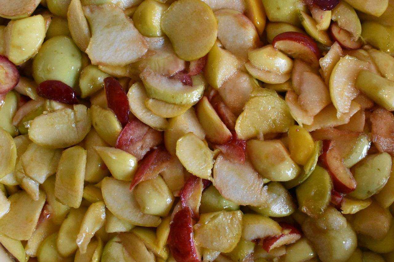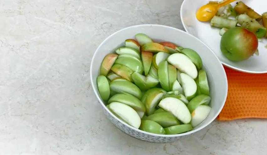 - кисло-сладкие яблоки твердых сортов — 2 кг (в нарезанном виде)