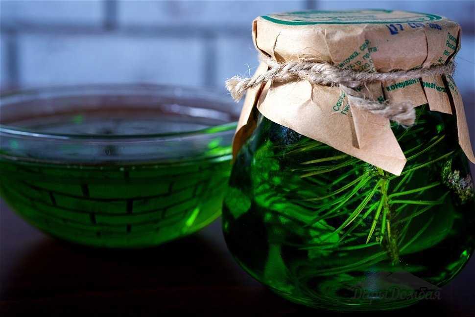- Залейте промытую хвою водой и варите 3 часа на водяной бане. Процедить.