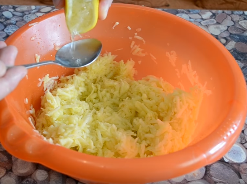Добавляем лимонный сок, чтобы яблоки не потемнели. А также, чтобы добавить кислинку, чтобы наш пирог не был приторно сладким.