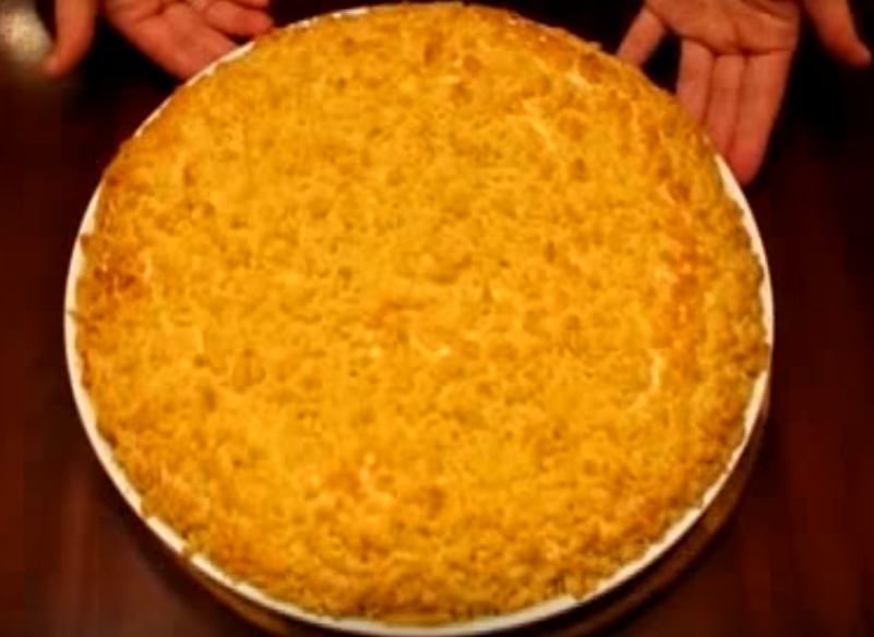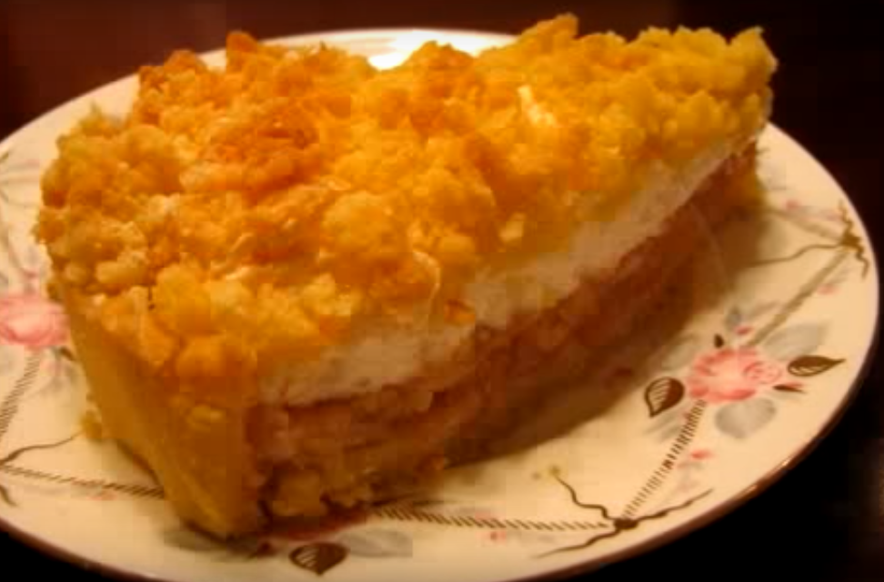 - Отправить пирог в духовку на пару минут до образования кремовой корочки на безе.