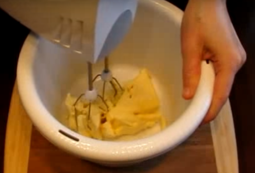 - Яйца разбить в емкость и соединить с сахаром, тщательно взбить при помощи миксера в течение 10 минут.