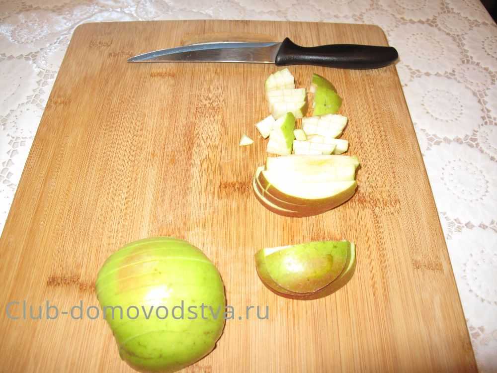 - Яблоки измельчить желаемым образом, допустимы кубики, ломтики или дольки, от кожуры очищать не обязательно.