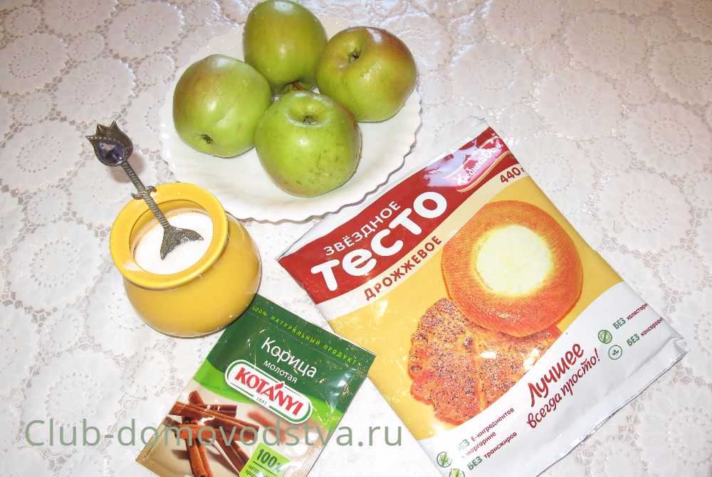 Яблоки для приготовления пирога желательно брать кислые. Тесто берем слоеное дрожжевое, но можно взять для приготовления и бездрожжевое.
