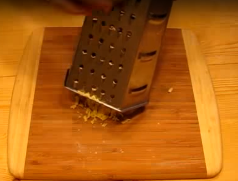 - 100 граммов холодного сливочного масла перетереть с сухой смесью, для этого можно воспользоваться теркой.