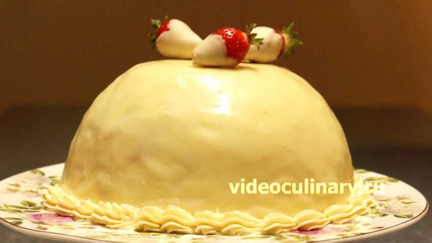 Блинный торт можно покрыть остатками крема и украсить по вашему вкусу. Мы будем покрывать блинный торт глазурью из белого шоколада.