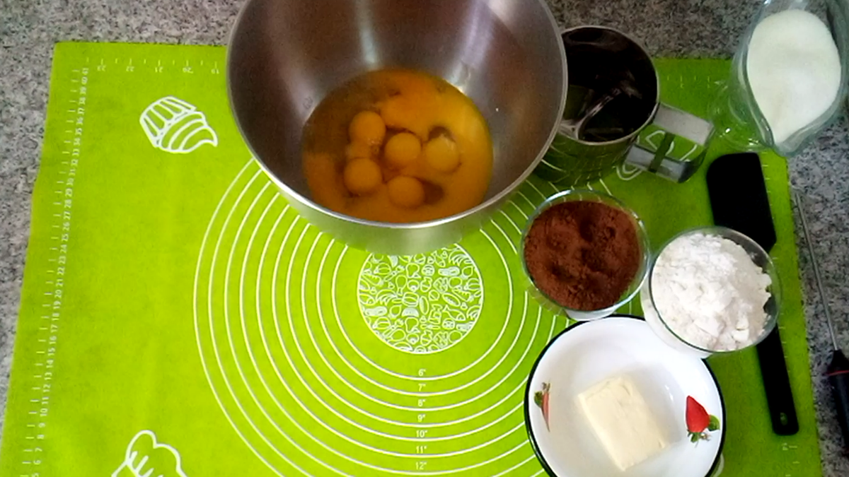 Температура продуктов должна быть не ниже комнатной. Можно достать яйца из холодильника и поместить их в миску с горячей водой, таким образом они слегка нагреются, тем самым сократится время взбивания и масса будет пышнее.