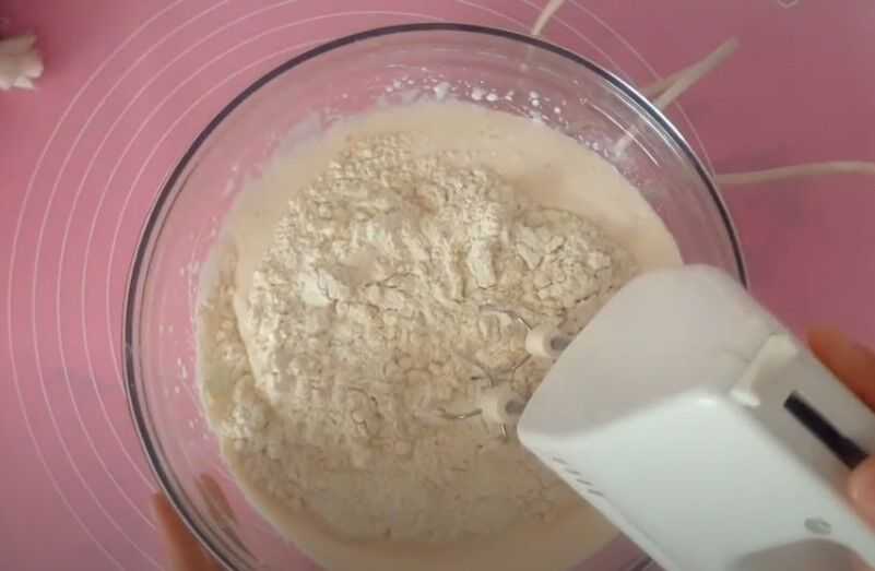 Тесто замешивается по принципу: всё в одной миске соединить и хорошенько размешать.