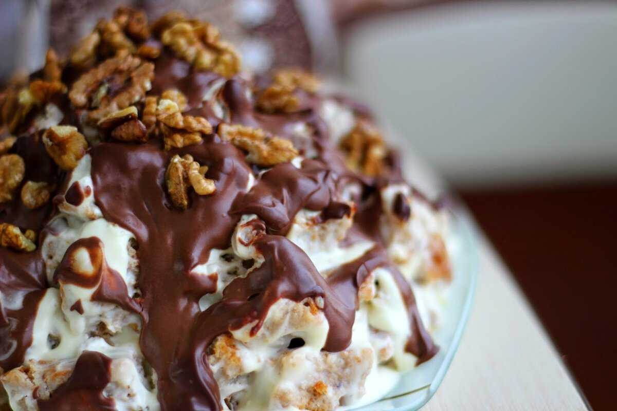 - Заливала купол сметанным кремом и отправляла все в холодильник.