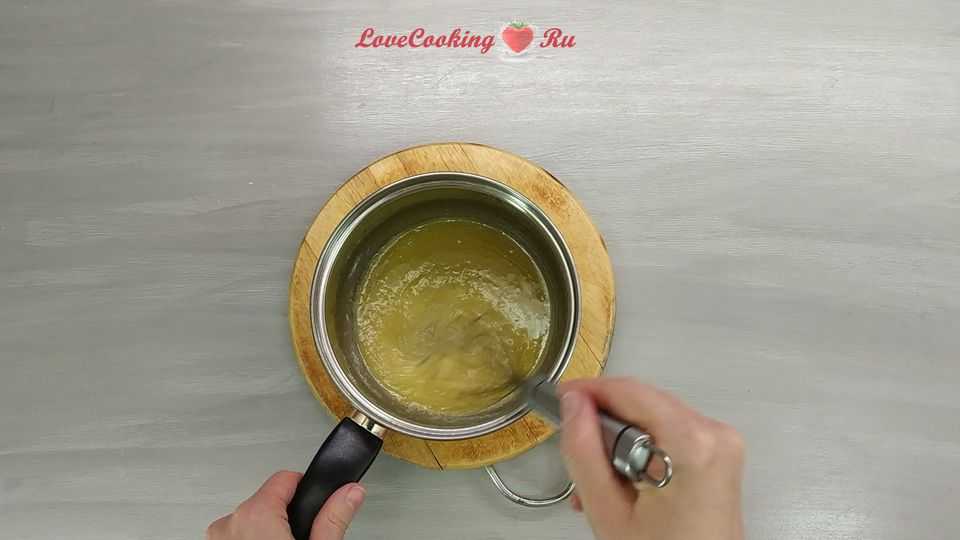 Сахар, мед, размягченное сливочное масло и немного соли — соединяем и перемешиваем. Ставим на водяную баню (поверх кастрюльки с закипевшей водой).