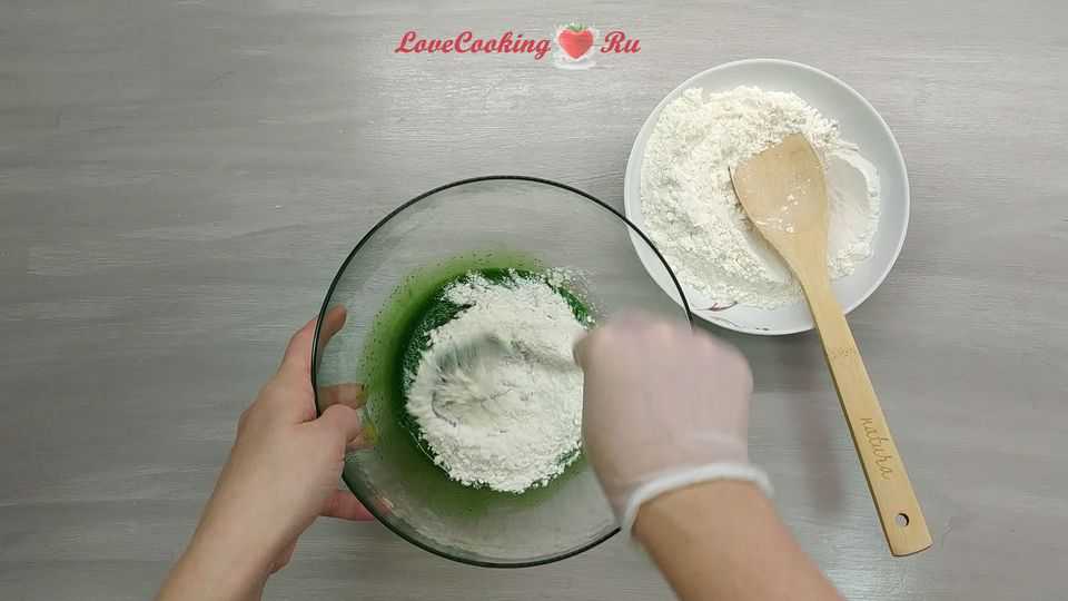 - краситель гелевый пищевой зеленого цвета — 2-3 капли;