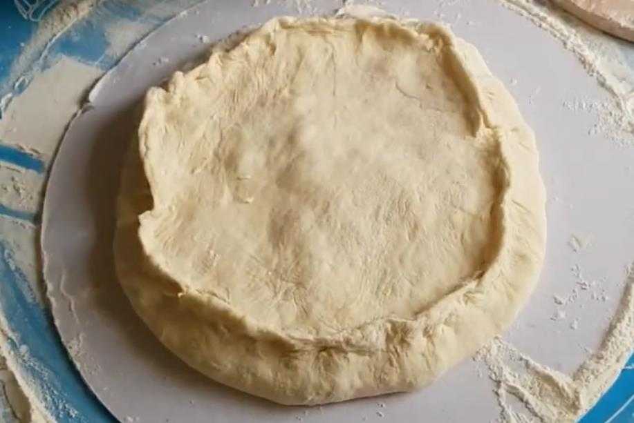 Перевернув ее местом бывшего «шва» вниз, положить на сковороду или на противень и еще раз прохлопать от центра к краям так, чтобы получился двух-трех сантиметровый по толщине круг около 30 сантиметров в диаметре.