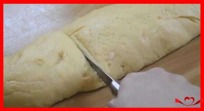 7. Разделите тесто на 2 неровные части. Я всегда режу тесто на глаз.