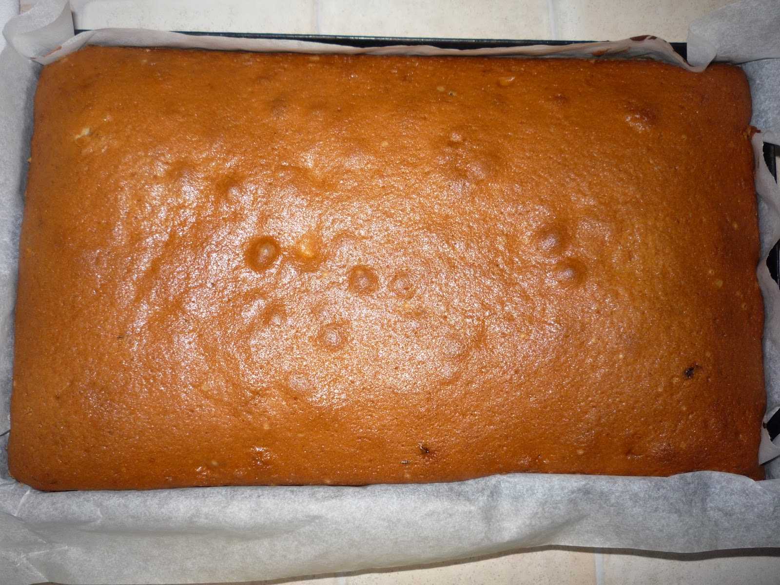 4. После выпекания достаньте «чудо» и сразу же поверхность смажьте вареньем или другой начинкой.