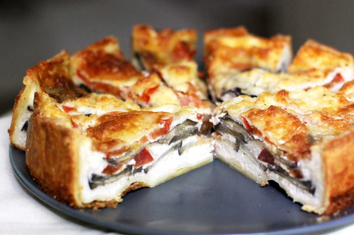 Этот пирог – полноценное блюдо, которым можно сытно перекусить и даже поужинать. Тесто замешивается на сметане с разрыхлителем и маргарином.