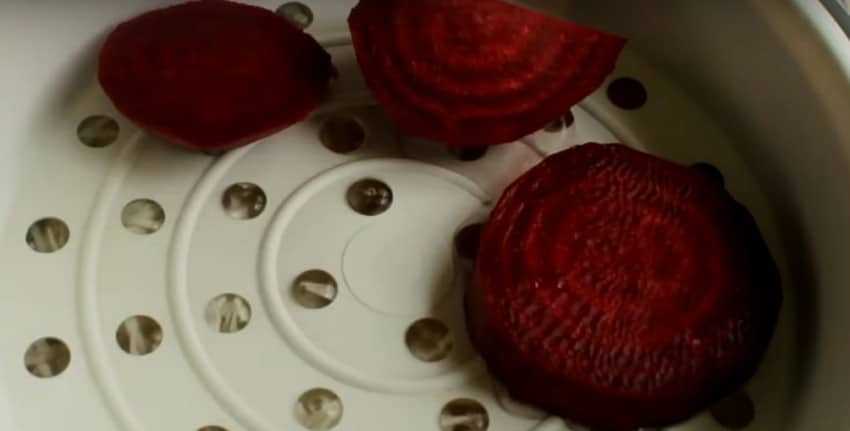 3. Закройте крышкой, выберите режим «Суп» и время 1 час. После того, как прибор издаст соответствующий сигнал, достаньте свеклу и слегка остудите ее.