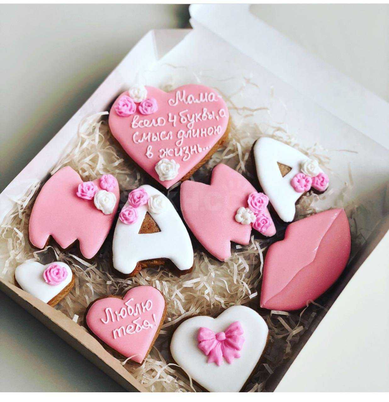 Очень здорово смотрятся пряники в форме букв, из которых можно составлять всевозможные слова и композиции, адресованные мамам, дочкам и любимым. Из таких букв получаются эффектные наборы, особенно если дополнить их пряниками, украшенными в виде тюльпанов, птичек, сердечек и любых других приятных сердцу мелочей.