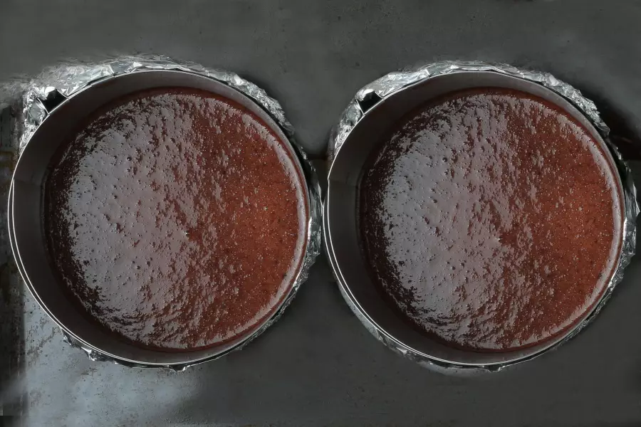 Шаг 4 Готовое тесто разделите на 2 части и выложите в 2 формы диаметром 16 см. Выпекайте 25-35 минут в предварительно разогретой до 180 градусов духовке. Готовность проверяйте при помощи деревянной шпажки или зубочистки.