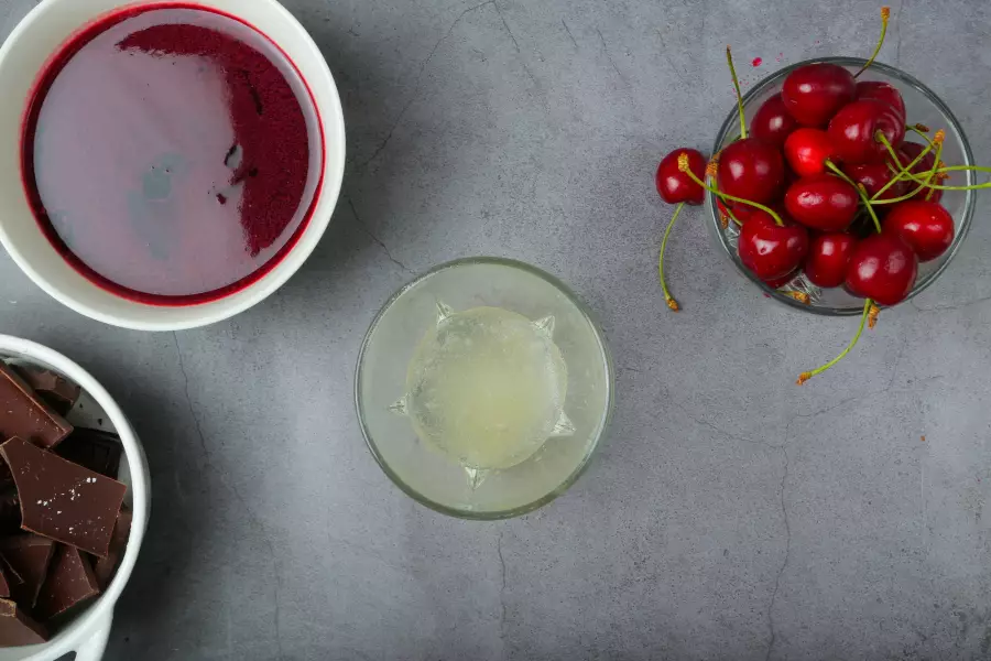 1. Большую часть времени в процессе приготовления будет занимать начинка «пьяная вишня». Начни с этого. Размороженную вишню переложить в миску с крышкой. Добавьте экстракт корицы и ванили и перемешайте. Залить ягоды спиртом. Накройте и дайте постоять не менее 12 часов.