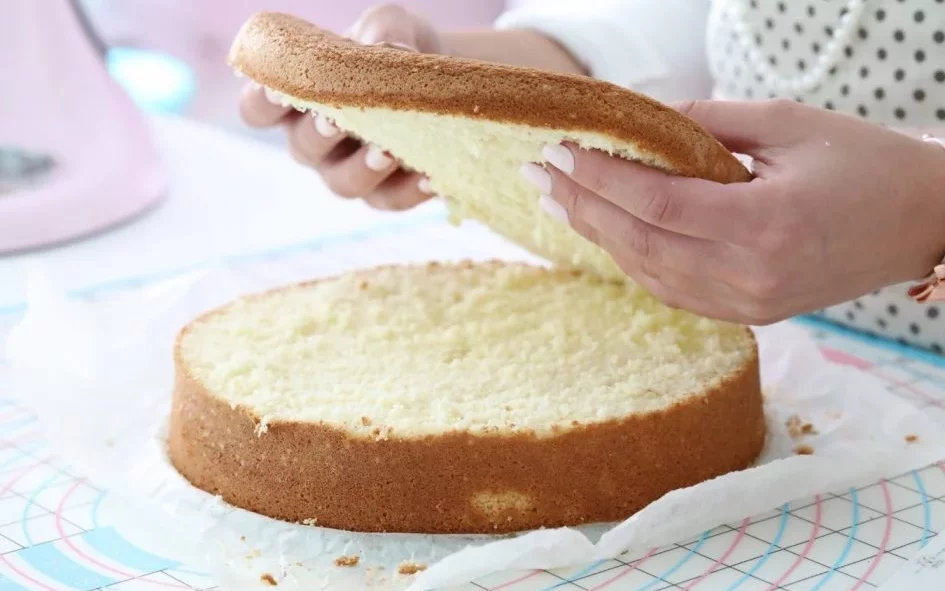 10. Даем готовому бисквиту остыть и делим его на коржи.