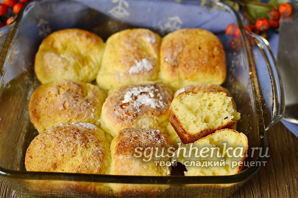 Снимаем пергамент с булочками и переносим на решетку. Можно дать им остыть, но уверяю вас, когда перед вашими глазами такая аппетитная сдобная домашняя выпечка, устоять очень тяжело!