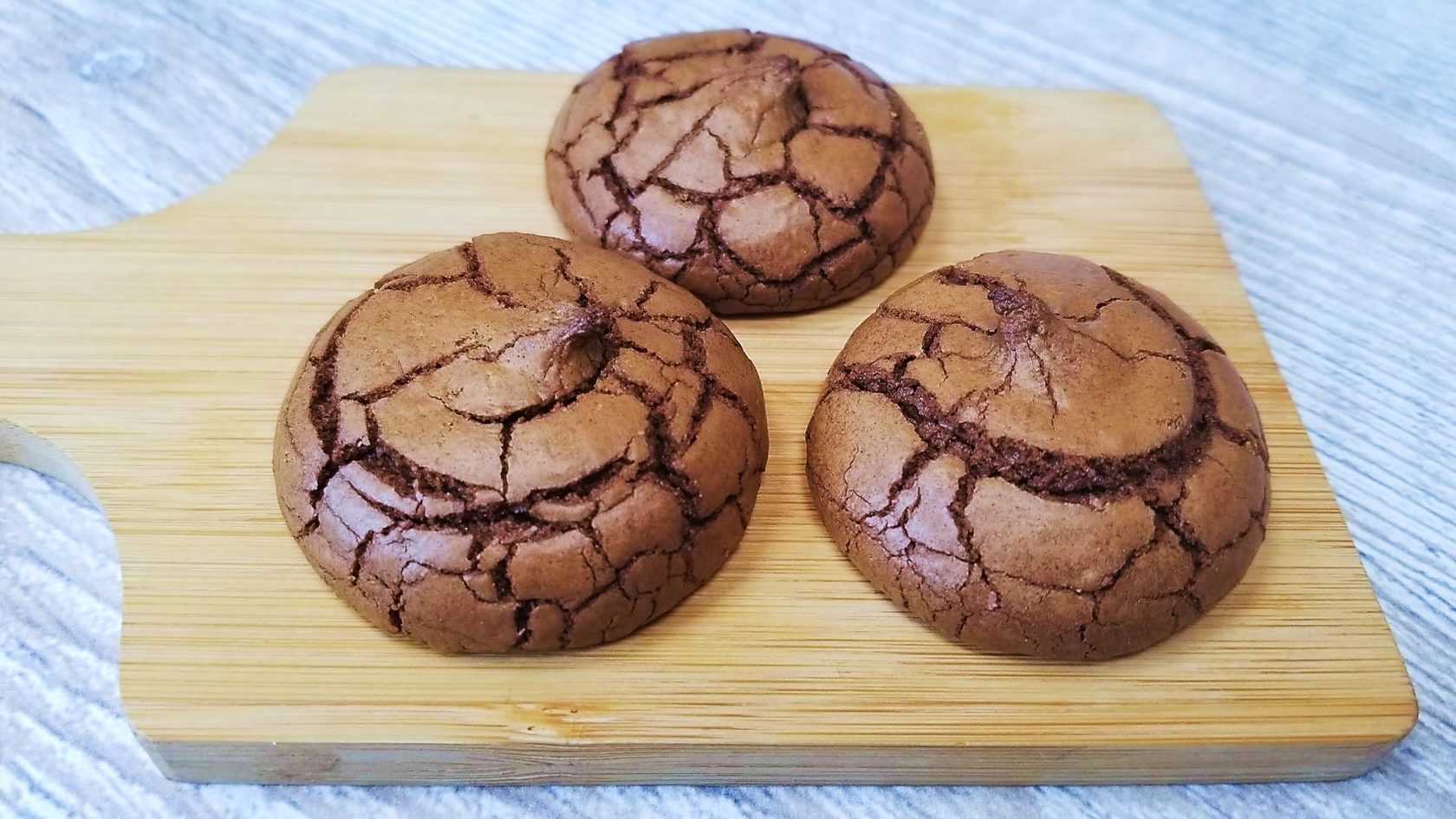 Мраморное шоколадное печенье с трещинками готово, нежнейшее внутри, с рассыпчатой верхушкой, покрытой тонкой сахарной корочкой.