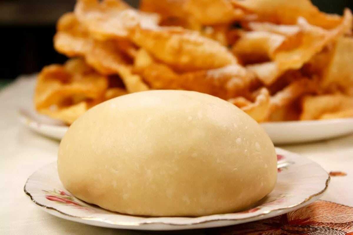 Основные ингредиенты этого рецепта те же: мука, кипяток и соль. Замешивается оно быстро, получается эластичным, мягким. Но уникально оно своей особенностью. В его составе присутствует малая доля алкоголя.