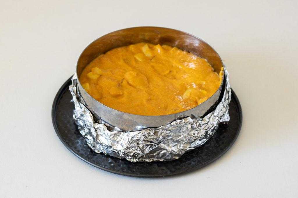 11. Переложите основу морковной шарлотки в заранее подготовленную форму. Разогрейте духовой шкаф до 170 градусов и выпекайте пирог до готовности. Обязательно проверьте тесто зубочисткой, прежде чем вынимать из духовки.