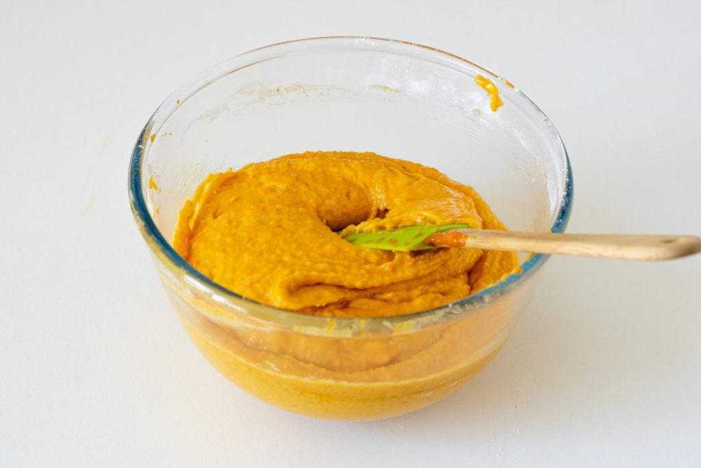 8. Замесите тесто. Оно получится не слишком густое, по консистенции ближе к жирной сметане.