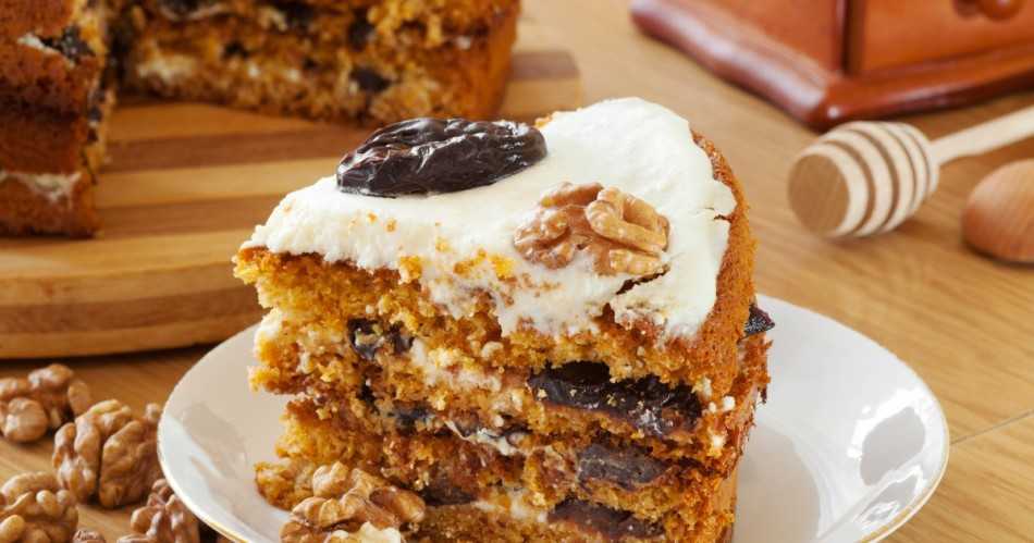 Медовый торт с черносливом и сметаной получается необычайно вкусным и оригинальным. Чернослив придает крему необычный вкус и аромат.