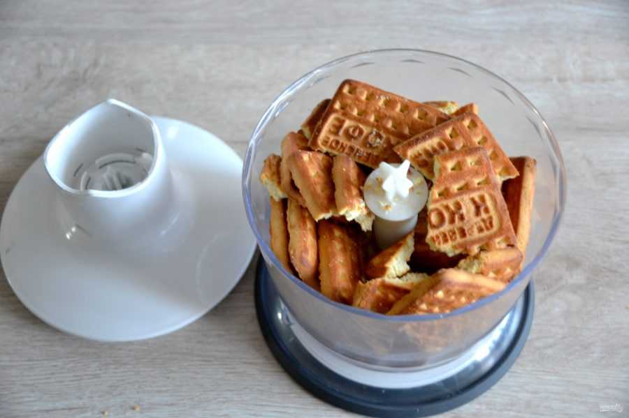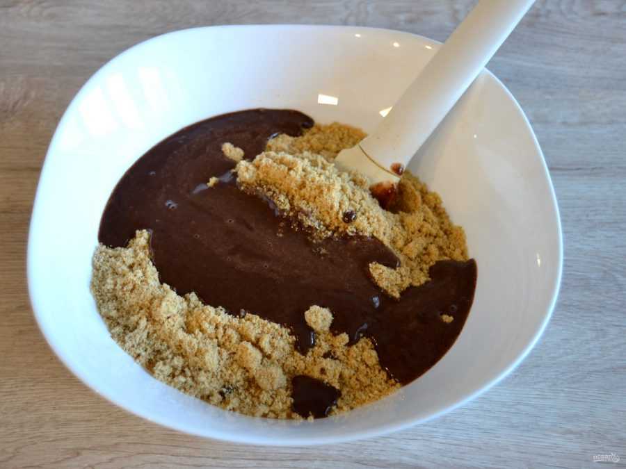 Влейте шоколадную смесь к измельченному печенью, перемешайте.