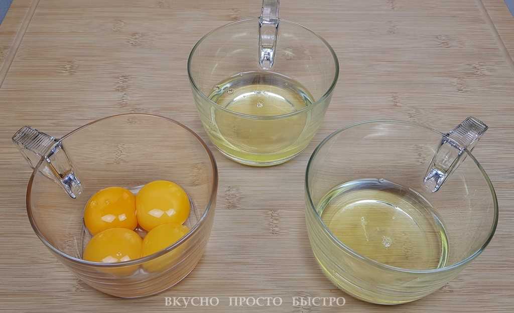 2 яичных белка убираем в сторону, из них позже приготовим безе.