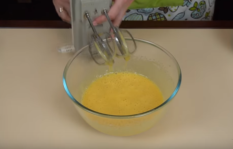 1. В отдельную миску вбить яйца, добавить муку и хорошо помешать. Должна получиться однородная масса без комочков.