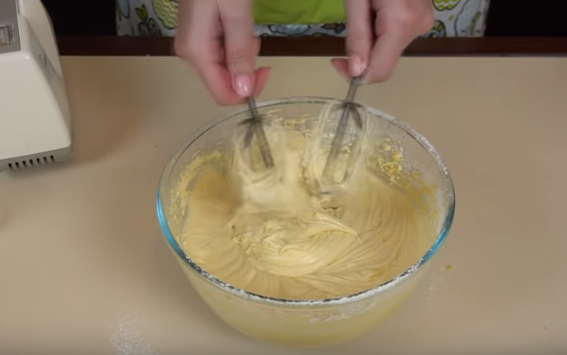 - Размягченное сливочное масло взбиваем и подмешиваем в остывший заварной крем.
