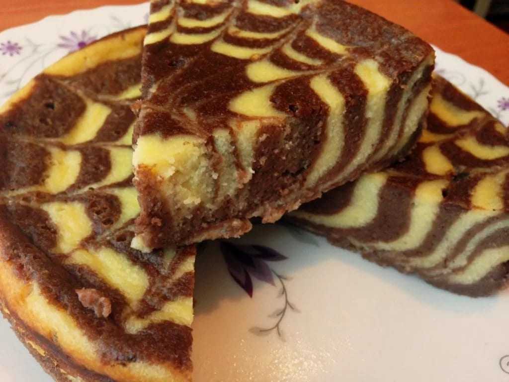 Десерт под названием «Зебра» готов! Рецепт совершенно несложен и теперь вы в этом убедились. Время делать фото своего творения и, конечно же, пробовать! Не забудьте также запечатлеть на фото разрез этого дивного десерта!