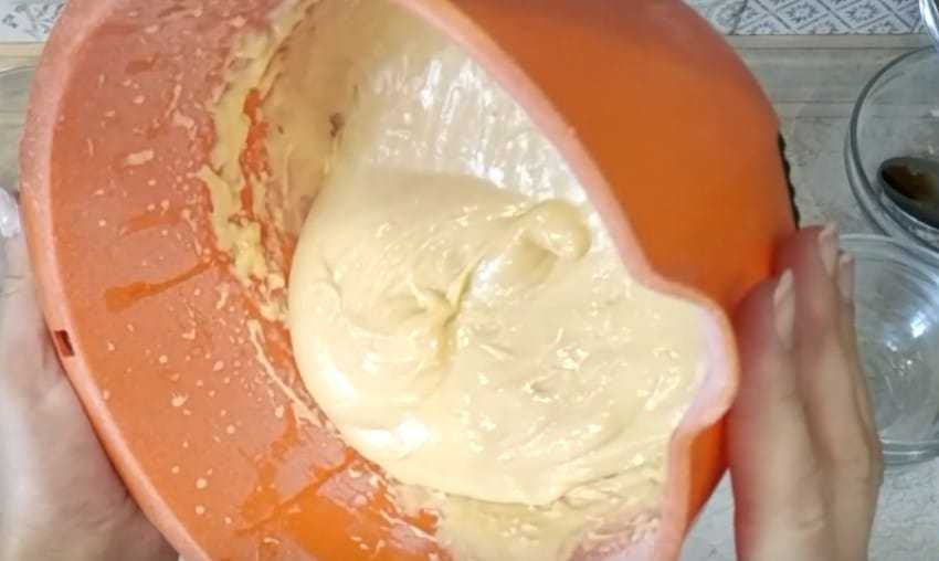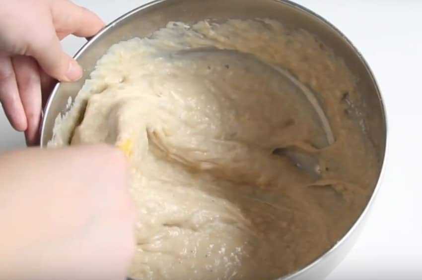 Когда вы добавите первую порцию муки, размешайте тесто венчиком. На каком-то этапе тесто станет более плотным и венчик перестанет справляться.