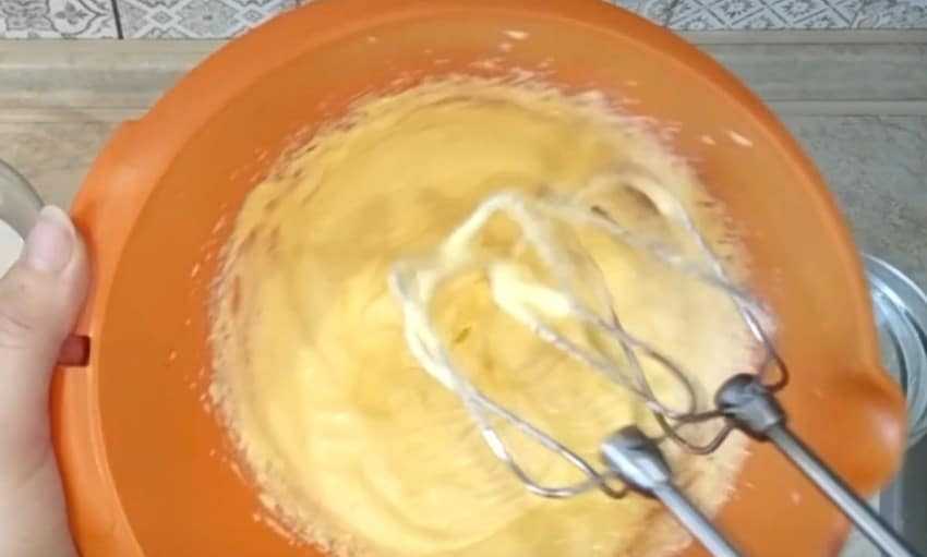 Добавьте 4-5 ст. л. сахара и продолжайте взбивать.
