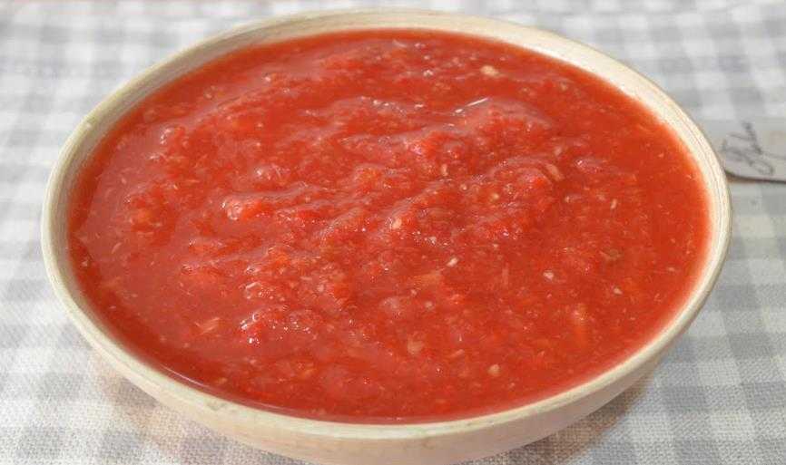 Самой приятной на вкус и питательной является аджика с томатной пастой. Отличается способ ее приготовления в необходимости создания соуса, для которого потребуется: