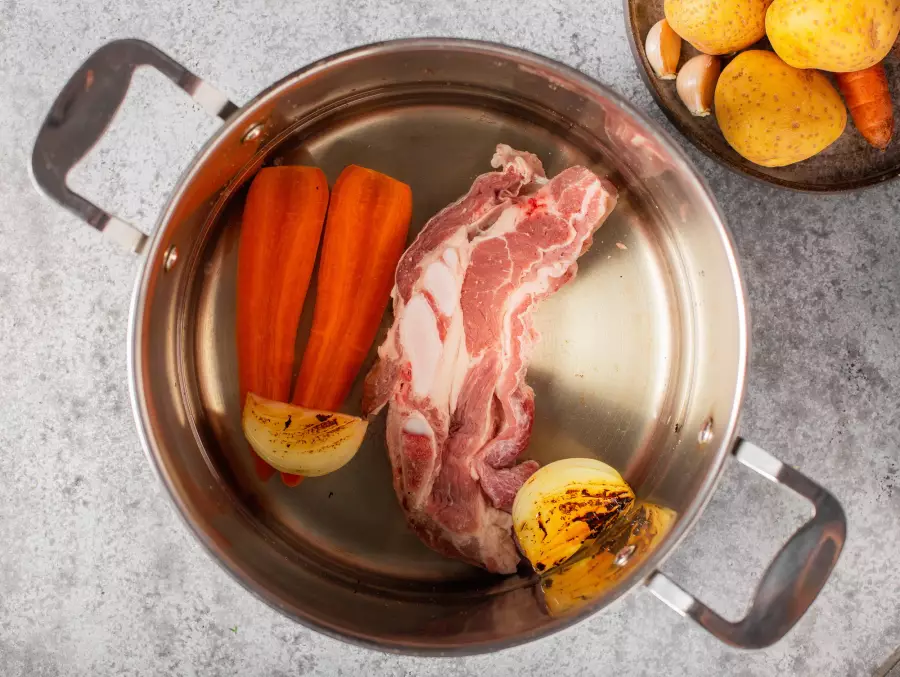 Свинину, как и говядину, тоже можно взять с косточкой. Но чтобы в борще после его приготовления все же было мясо, кости выбирайте мясные. После варки мясо просто обрежьте и добавьте опять в суп, а кость уберите.
