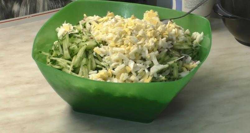 Свежие огурчики и редиску помойте, нарежьте квадратиком и тоже выложите ко всем овощам и яйцам.