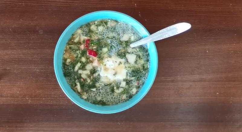 По желанию, можно заправить айраном или таном. Мне очень нравится с таном, я пробовала у друзей. Его можно купить в магазине, продают его смешанным с укропом, и классический без добавок.