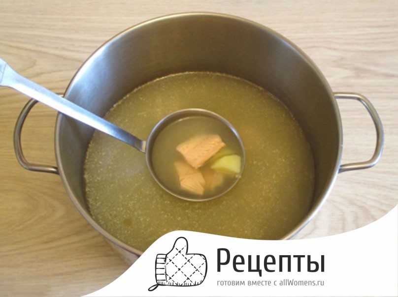 Насыщенный и наваристый бульон из горбуши готов, можно продолжать варить уху. Для этого снова поставьте кастрюлю с ним на плиту.