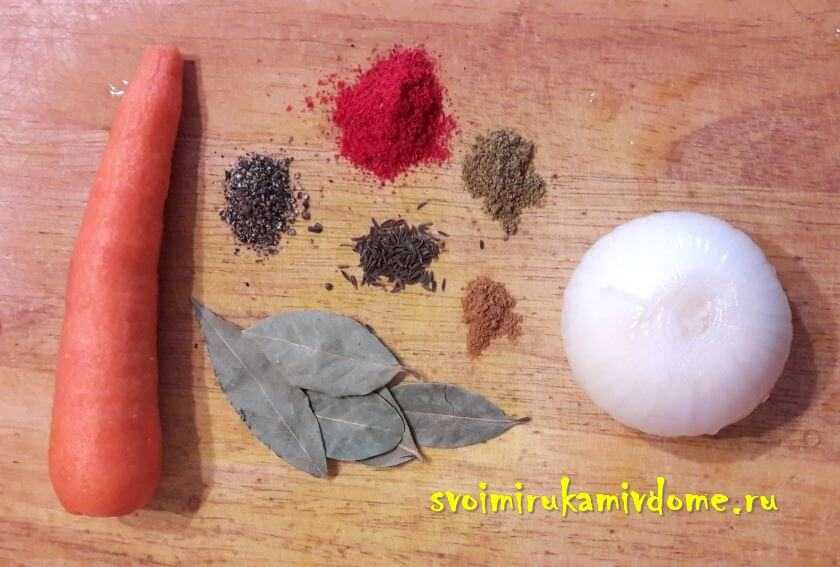 В моём рецепте нет большого разнообразия, ингредиенты самые простые. Но специи я очень люблю и кладу их во все супы. На 2,5 литра воды я кладу:
