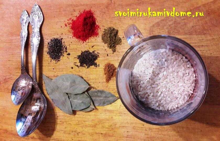 - рис – 130-140 граммов или 0,5 кружки на 300 мл;